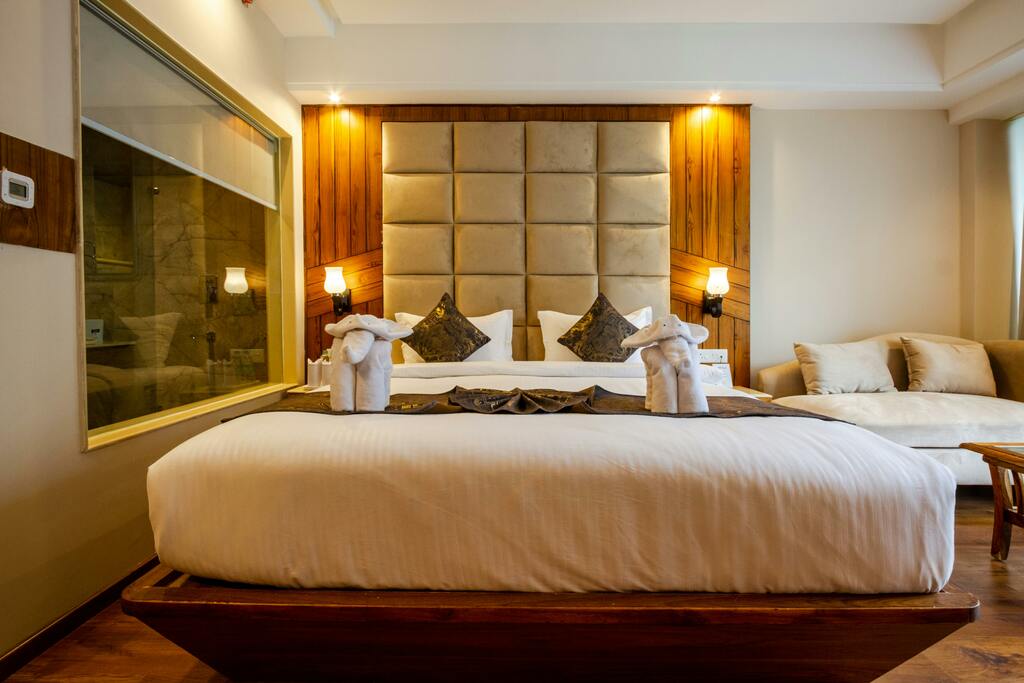 Spacious and comfortable, our Family Room features a cozy king-sized bed and two single beds, accommodating up to four guests. Equipped with a large TV and a shared balcony, it's perfect for family movie nights. Rates: $180 per night. Enjoy ample space to relax, socialize, and create lasting memories. Book your family retreat here! **Images**: 2119008, 2119011, 2118780
